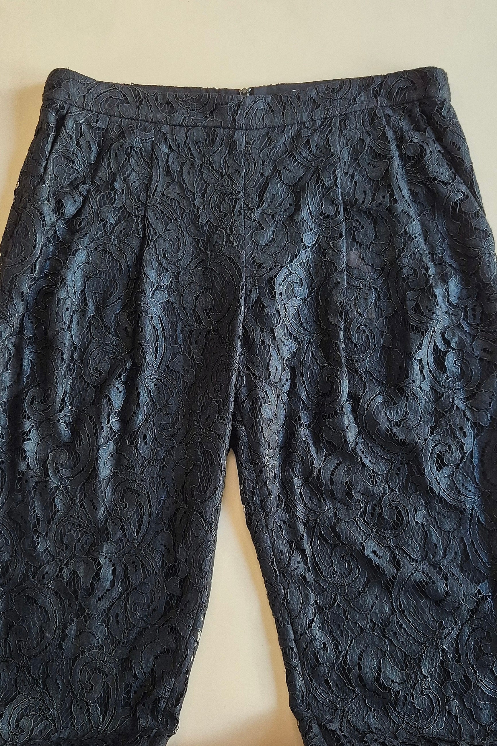 Stunning mid rise, tapered leg, lace pants from Bianca Spender. Featuring two pleats and side pockets at front. Slight sheerness to the fabric. A sexy and elegant pair of pants!