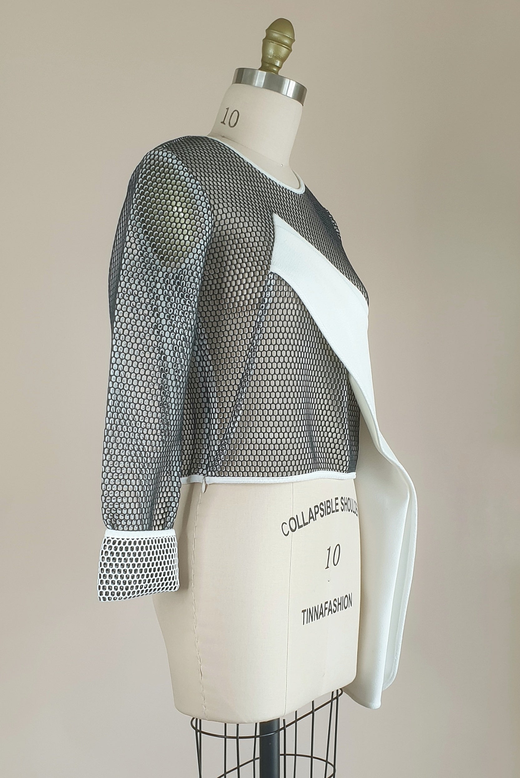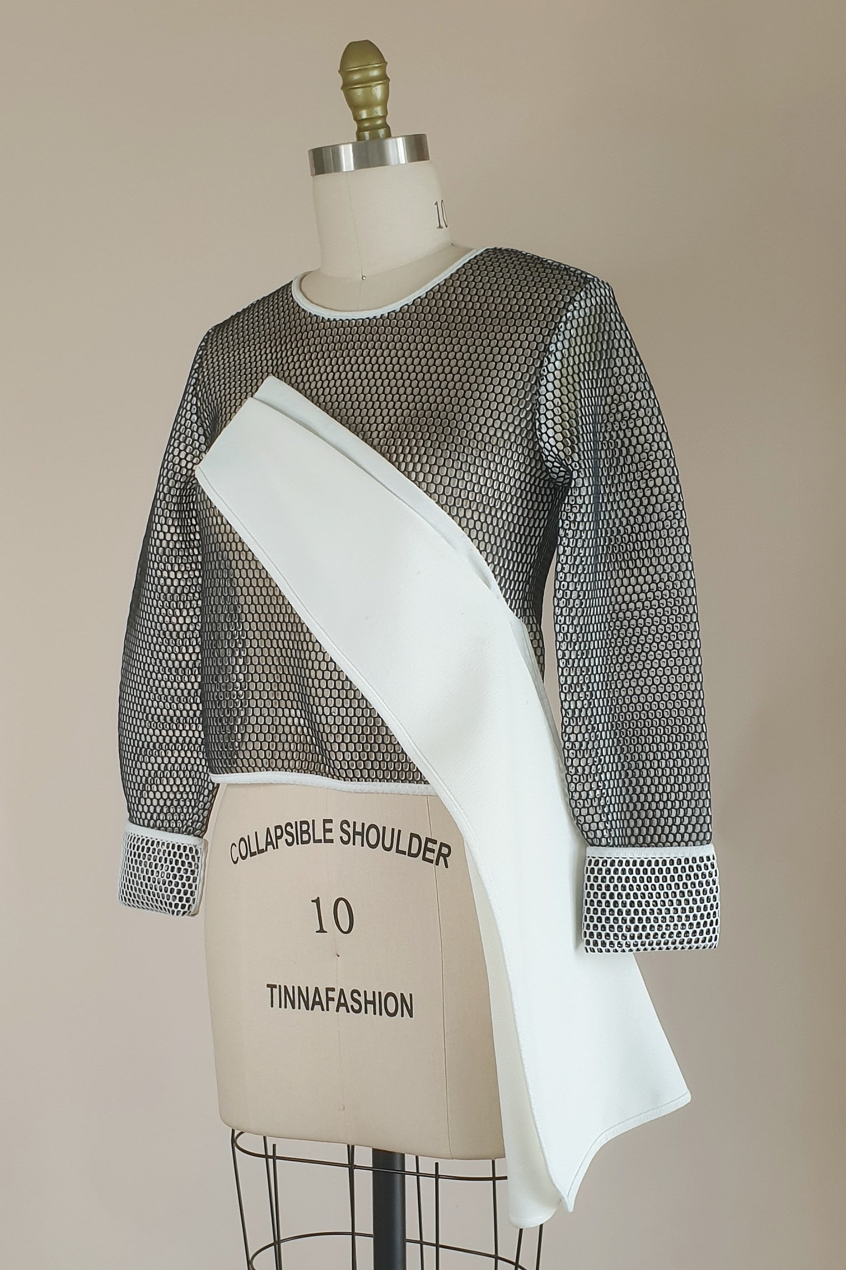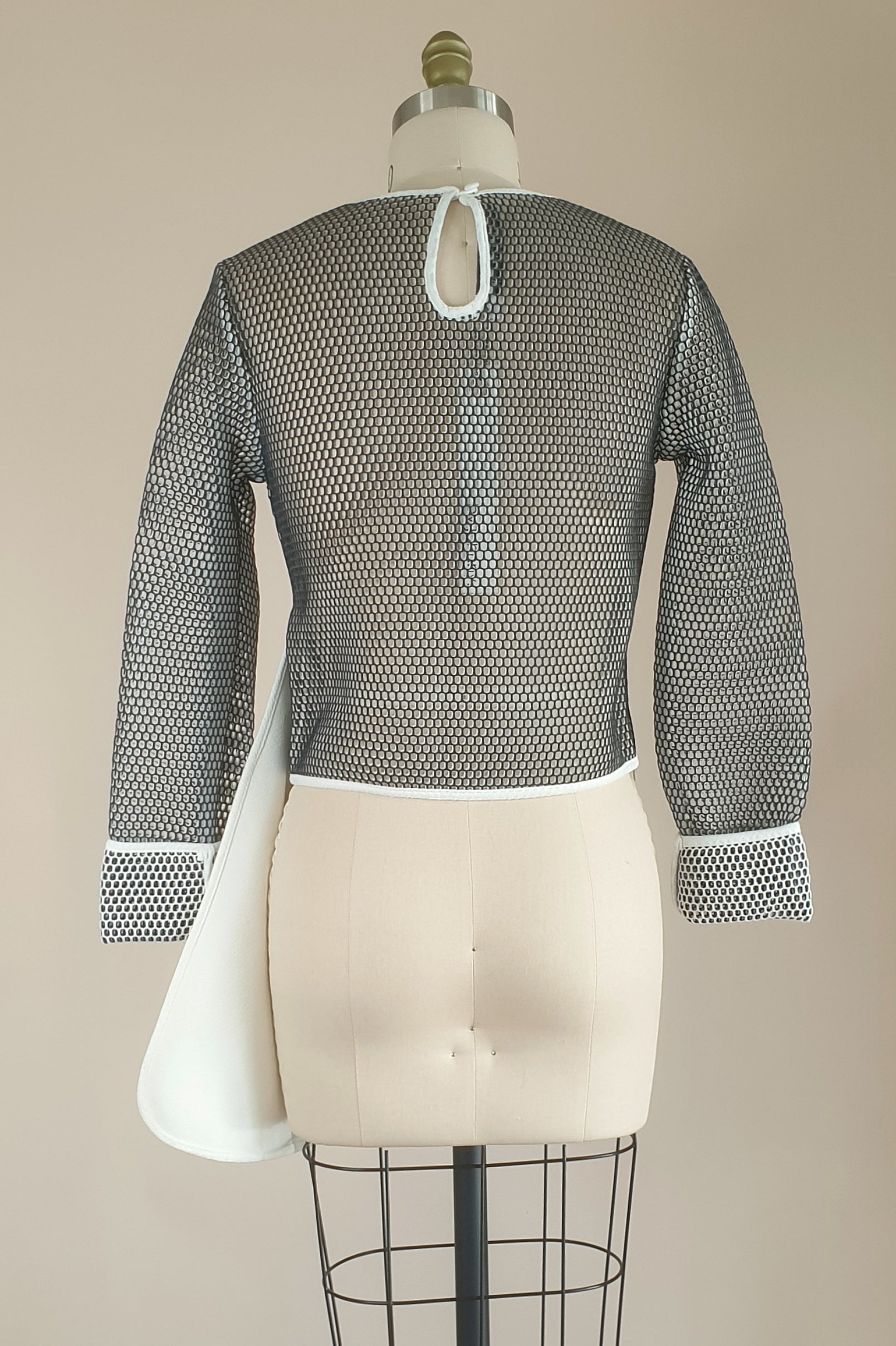 Fabulous structured statement top in a firm mesh fabric. Invisible side zip closure and keyhole closure at back neck. This one will be sure to have heads turning!