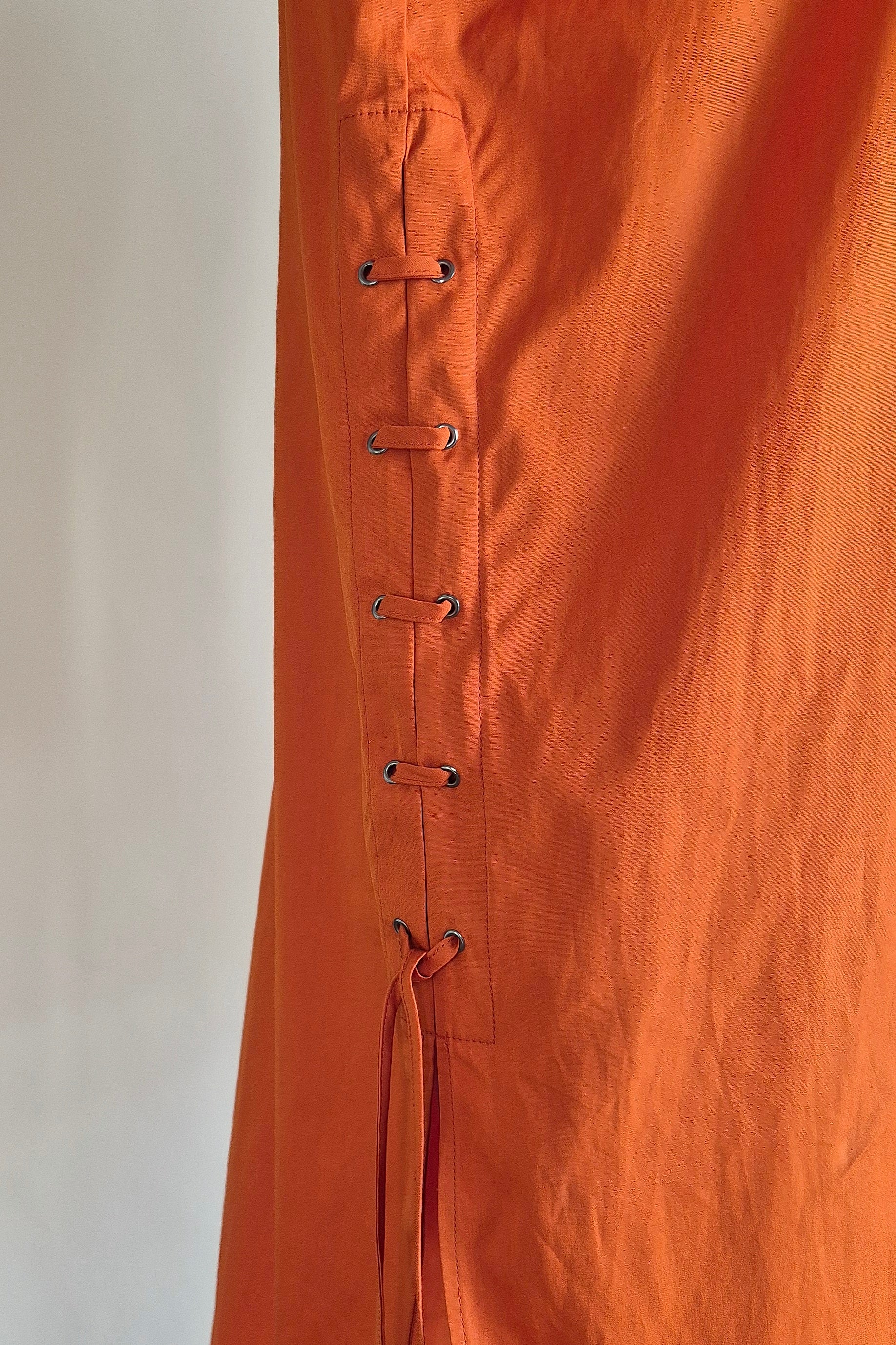Add a colour pop to your wardrobe with this vibrant Max Mara shirt. This striking piece combines bold colour with classic elegance. Crafted from high-quality 100% crisp cotton and cut straight through the body. This shirt features a concealed button closure at front and a lace up detail at the sides which add a unique edge. Pair it with tailored straight leg pants for a sharp office look or with jeans for a relaxed, chic ensemble. A classic yet contemporary piece for your spring wardrobe.