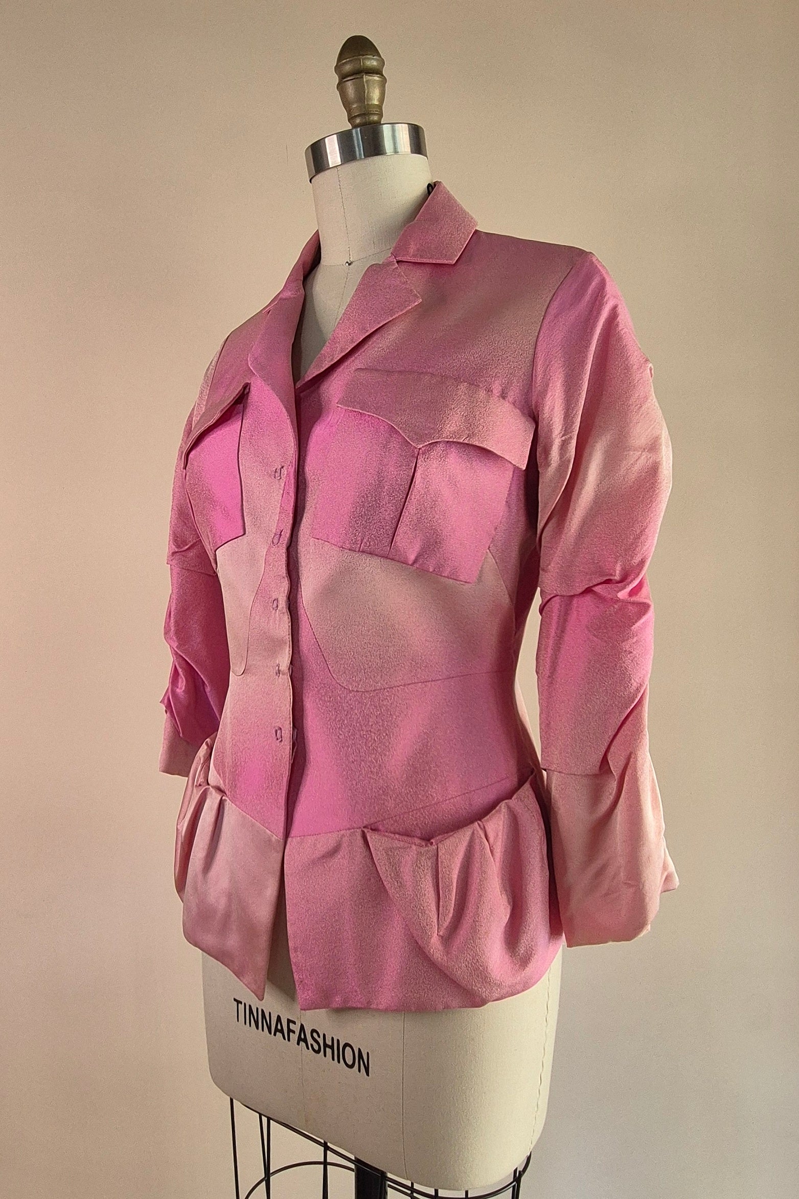 Shoulder seam to seam 39cm/ Bust 44cm/ Waist 36cm/ Length at longest point on front 63cm at back 58cm sleeve length 48cm/ Upper sleeve girth 15cm (All measurements taken with garment lying flat)