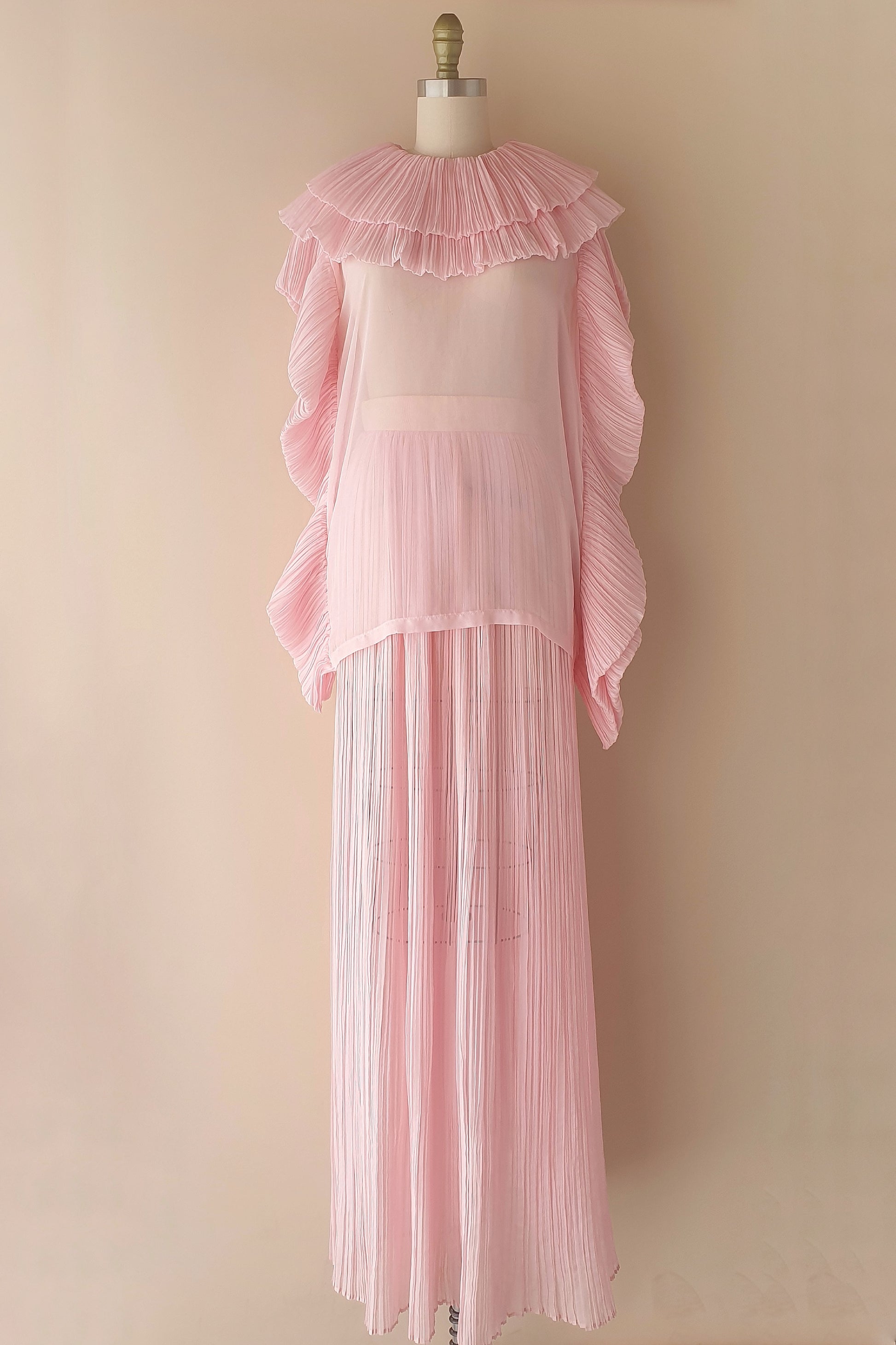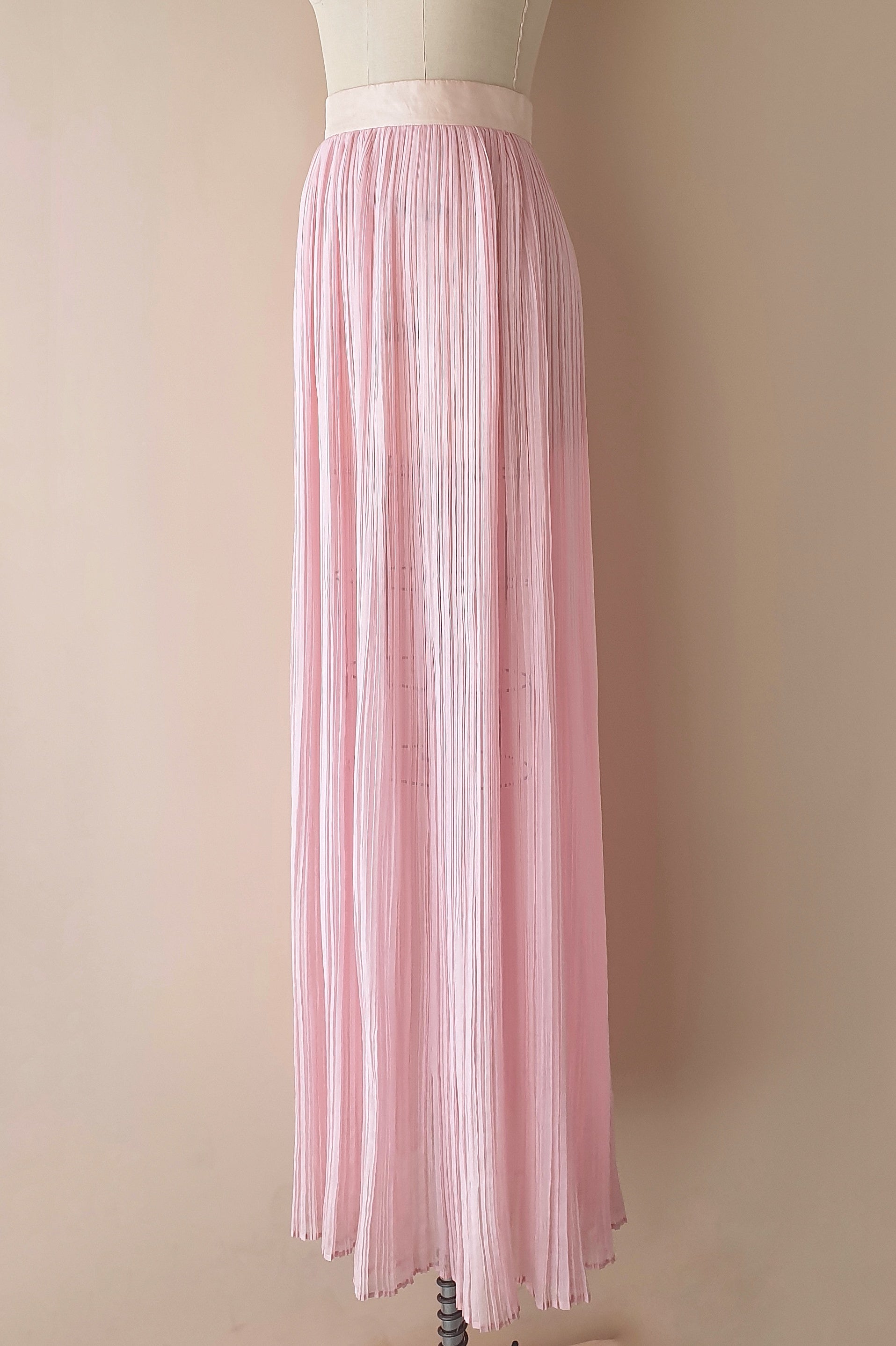 Absolutely stunning sheer pleated skirt from Michael Lo Sordo. A beautiful candy pink colour in a fine flowing fabric. A split at the side that goes to the waist. Invisible zip at back. Absolutely stunning!!