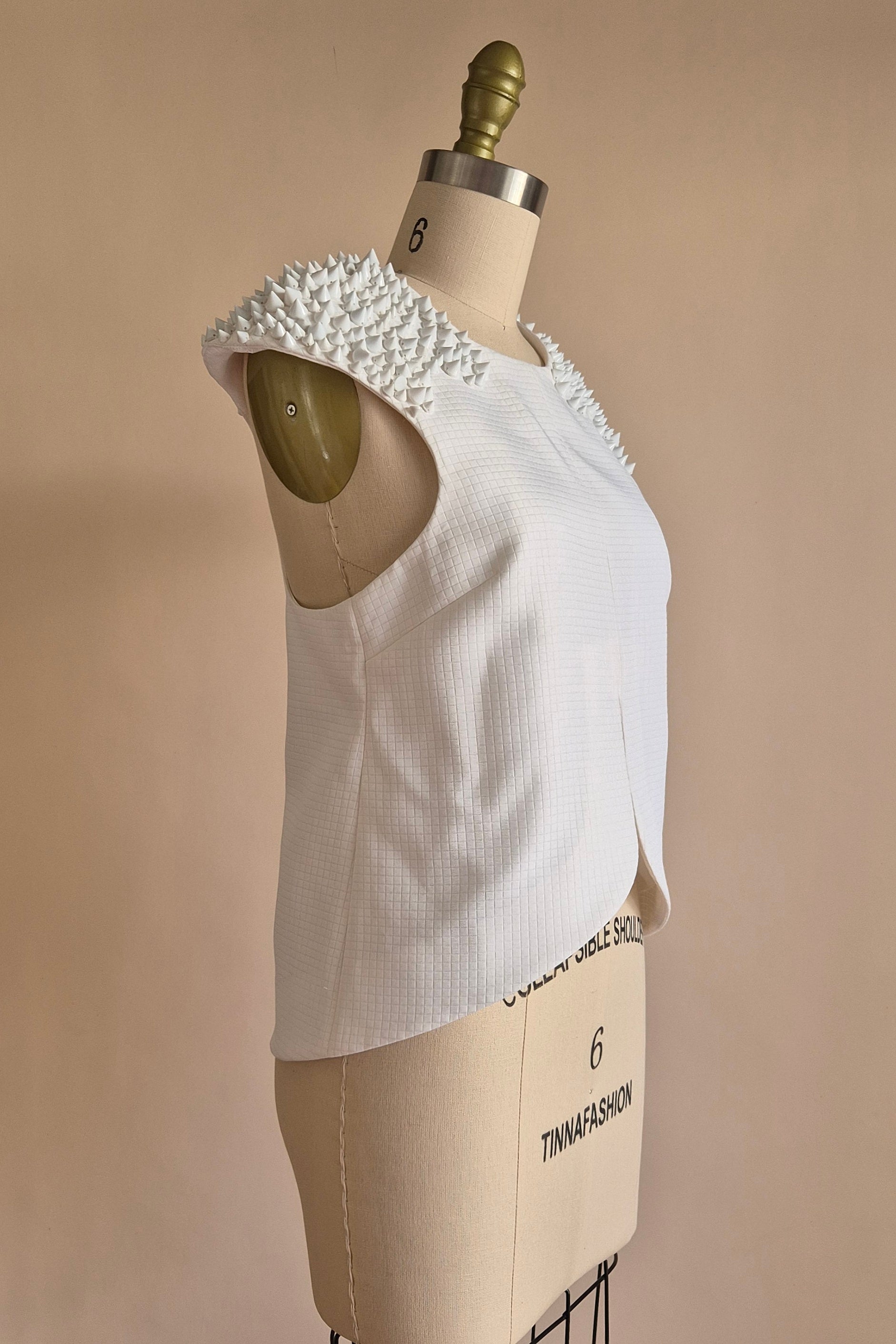 Fabulous Cameo cutaway top with studded shoulder detail. Gently fitted at the bust and shoulders then falling into a slight A-line shape to the hip. The cutaway armholes and studded detail elevate this piece to party status!