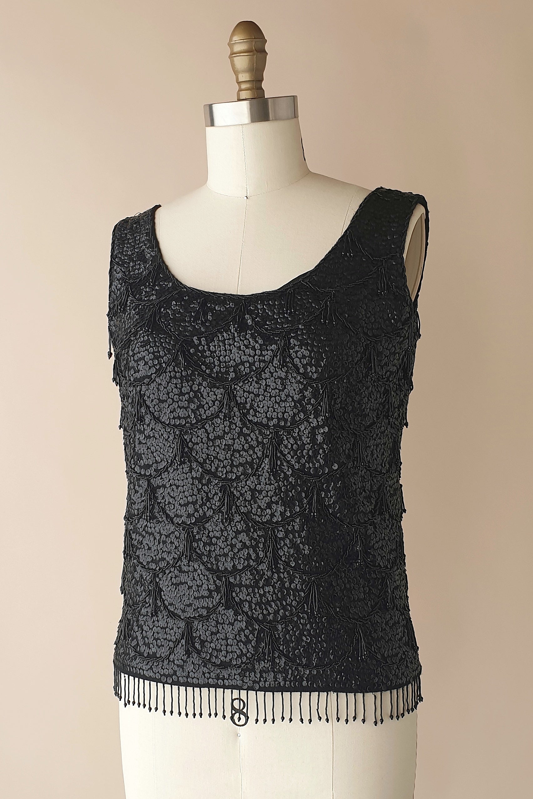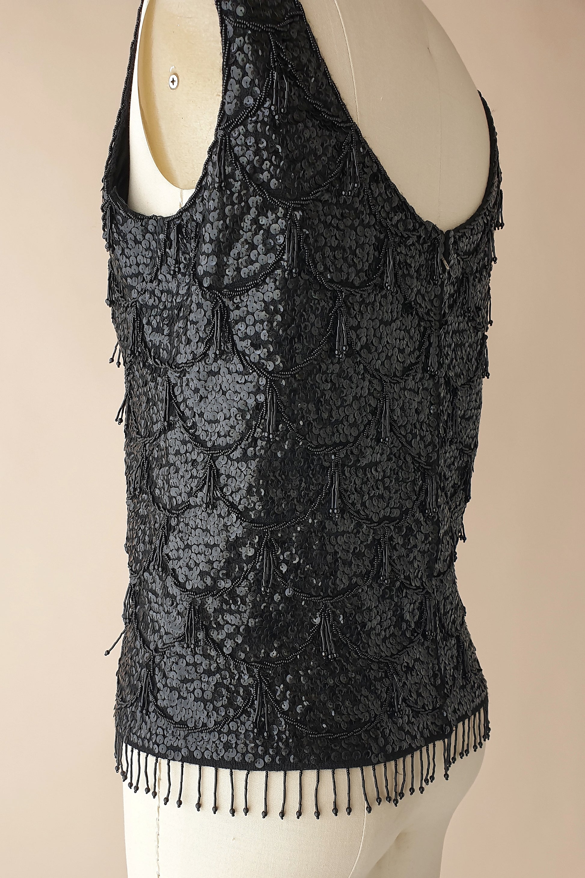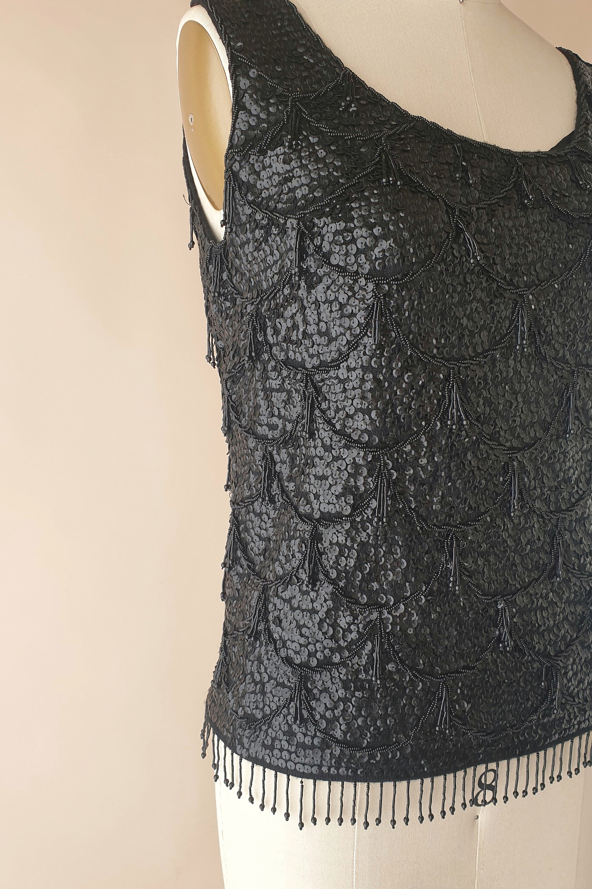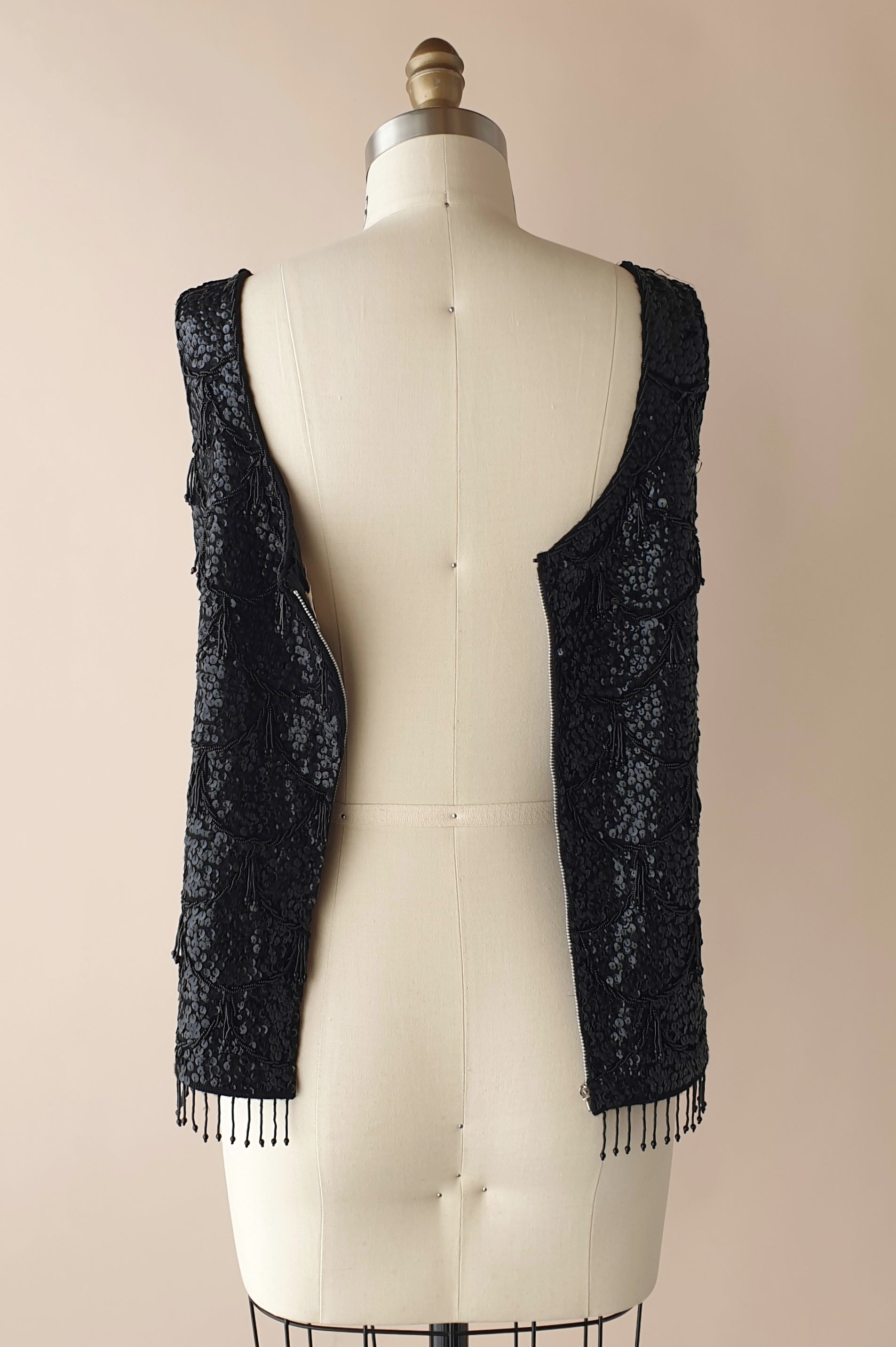 Absolutely stunning beaded wool sleeveless top. Zip closure at back, fully lined. A timeless piece for your forever wardrobe.